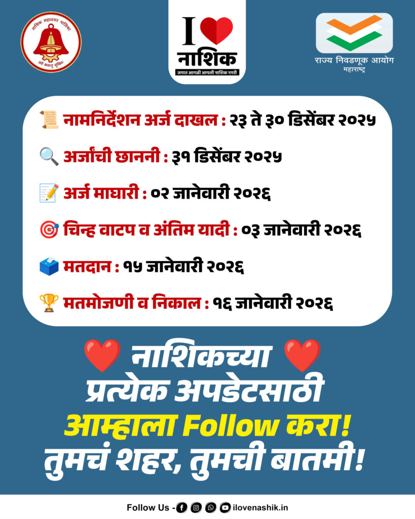 📲 ❤️ नाशिकच्या प्रत्येक अपडेट, न्यूज, लाईव्ह कवरिंग आणि ग्राउंड रिपोर्टसाठी आम्हाला Follow करा!